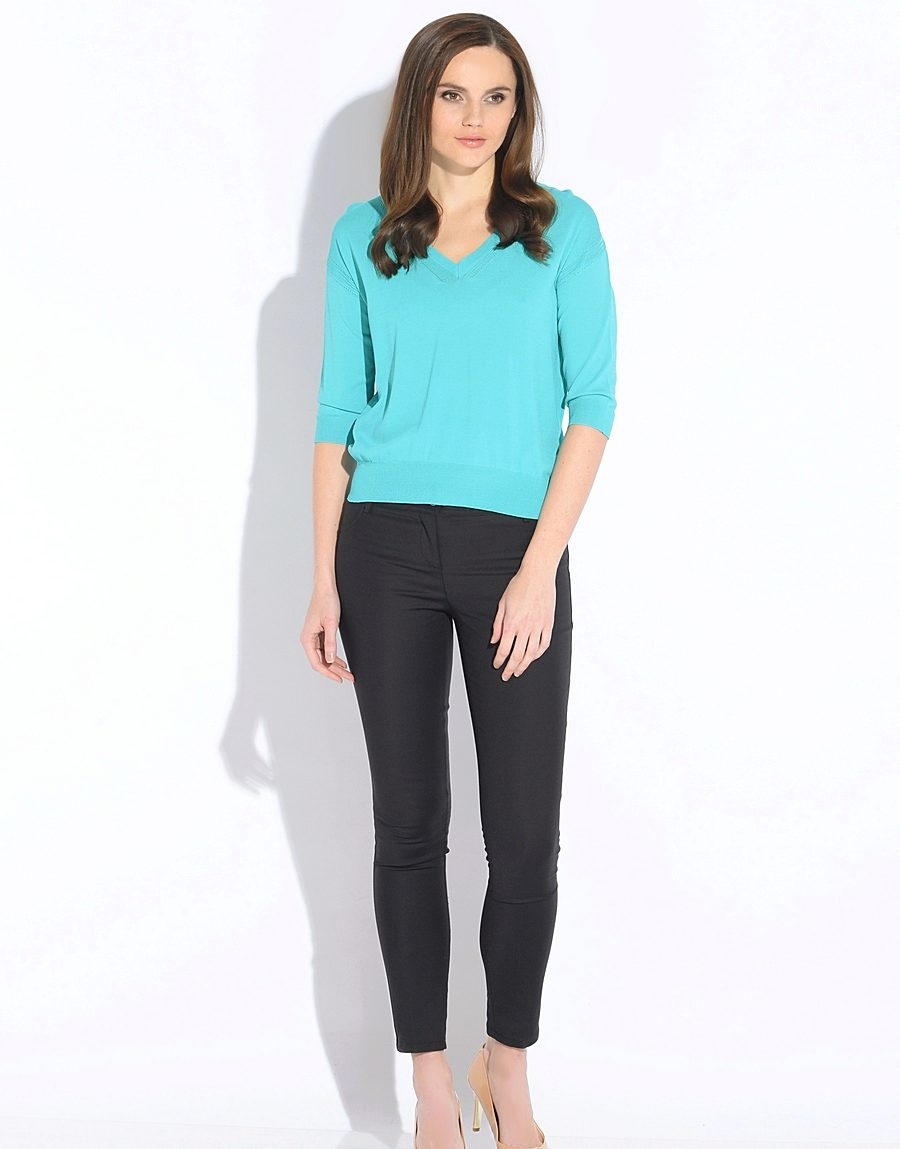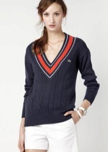 V-neck pullover is an elegant unisex model. Men usually wear such models with a shirt, and women may well refuse or replace with a thin top.