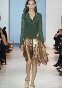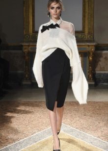 - irregular length pullovers - asymmetrical models, with a hem extended on one side and shortened on the other. This is a great option for girls who want to divert attention from the lush hips and protruding tummy.
