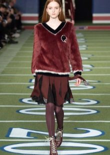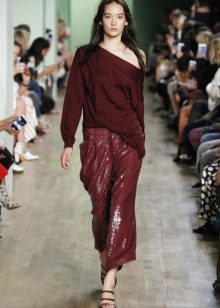 Burgundy pullover - one of the most fashionable things this year. The deep shade looks very elegant and goes well with things of different colors.