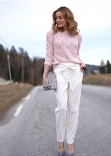 A pink pullover will surely please young fashionable women. Tender and romantic natures can combine a model of this color with snow-white trousers, light jeans or a skirt.