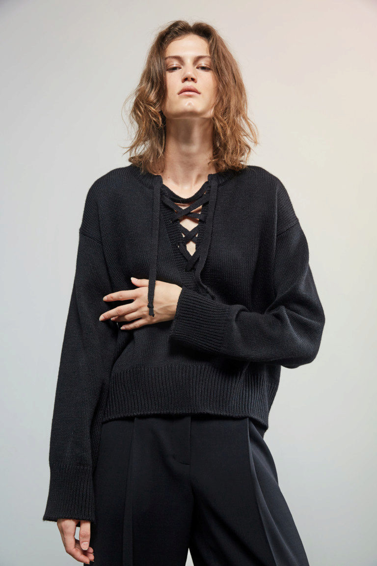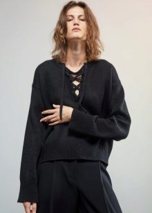 Black pullover is a real classic of everyday style, it looks restrained, but almost always very expressive.
