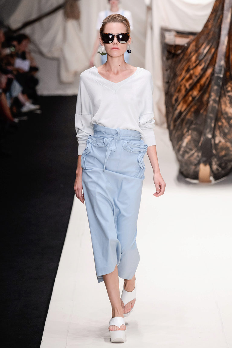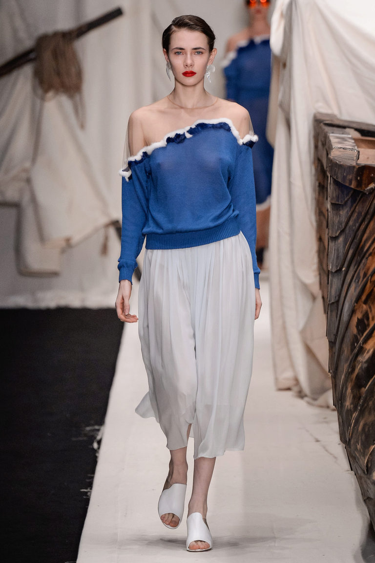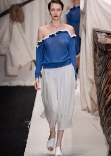 Asymmetrical models look bold and unusual. Asymmetry can be in a non-standard cut, uneven hem, irregularly shaped notch, etc. This category can also include pullovers on one shoulder or with one sleeve.