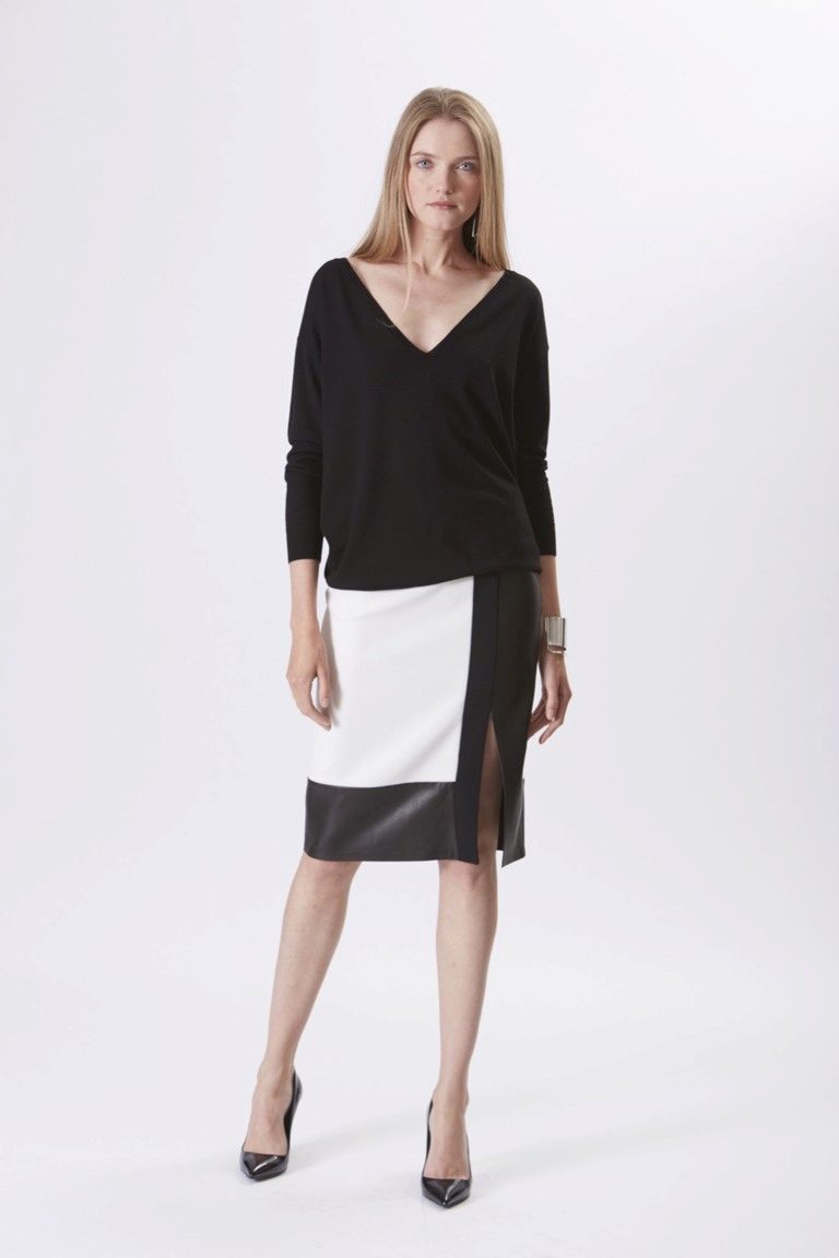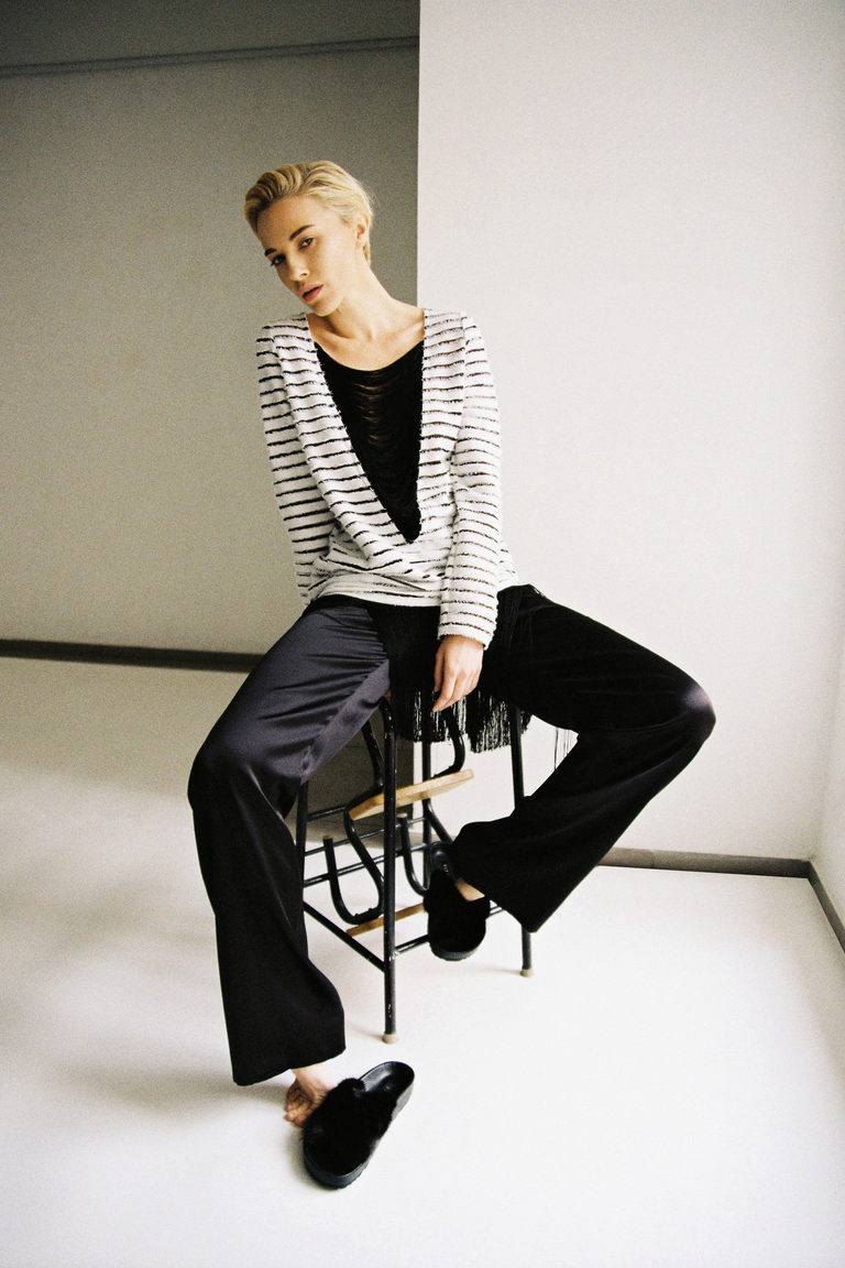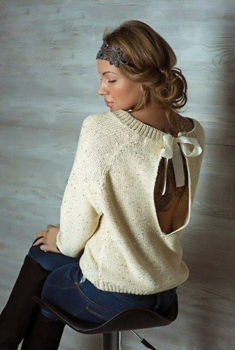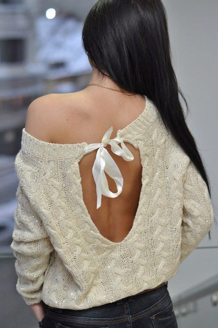 A cut on the back of a pullover is an incredibly spectacular detail that adds sexuality to even the most discreet look. Today, a long, narrow neckline “drop” is especially relevant.