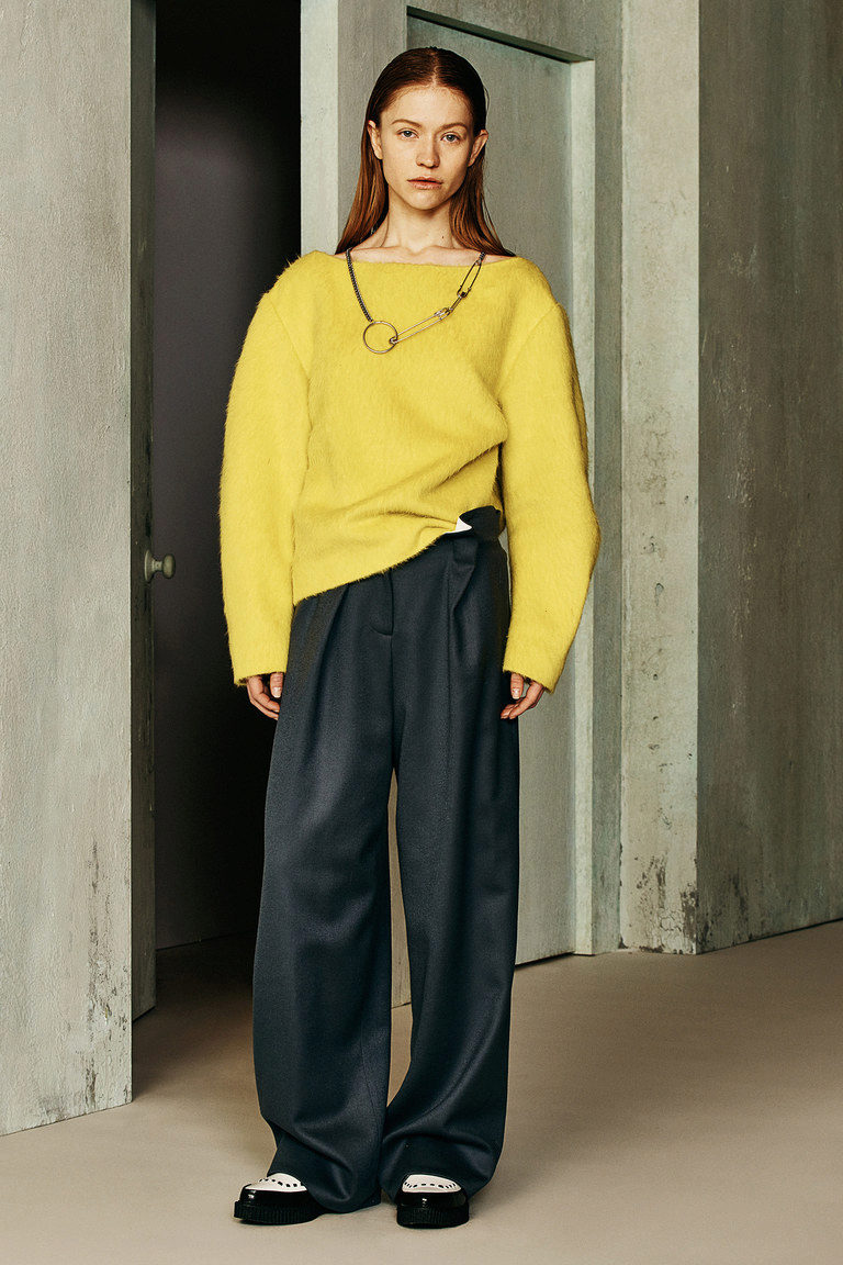 Yellow pullover is a choice of active and cheerful girls. This color is associated with heat and sunny color, so things in yellow colors give a good mood to everyone around.