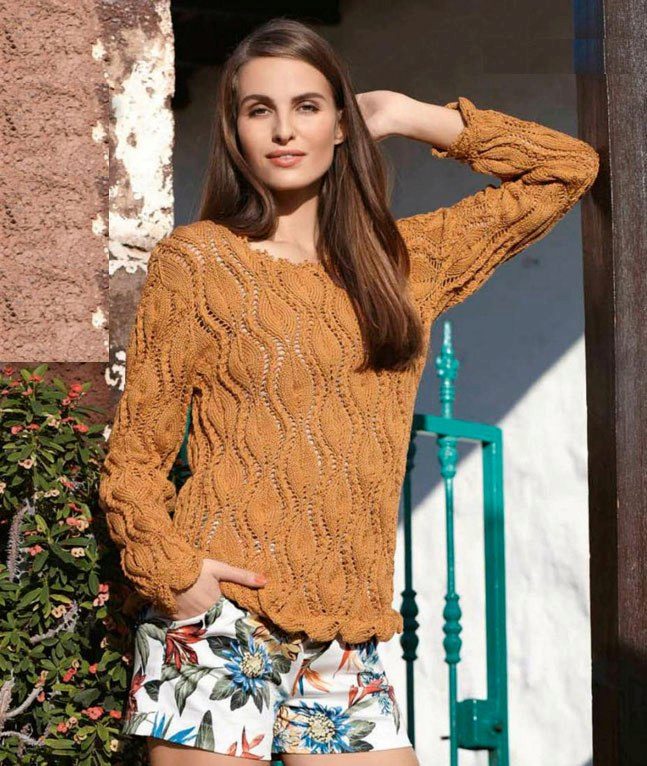 Pullover with a pattern of leaves can be knitted with your own hands, if you know how to handle yarn and knitting. This openwork ornament will become an original and expressive detail of your image.