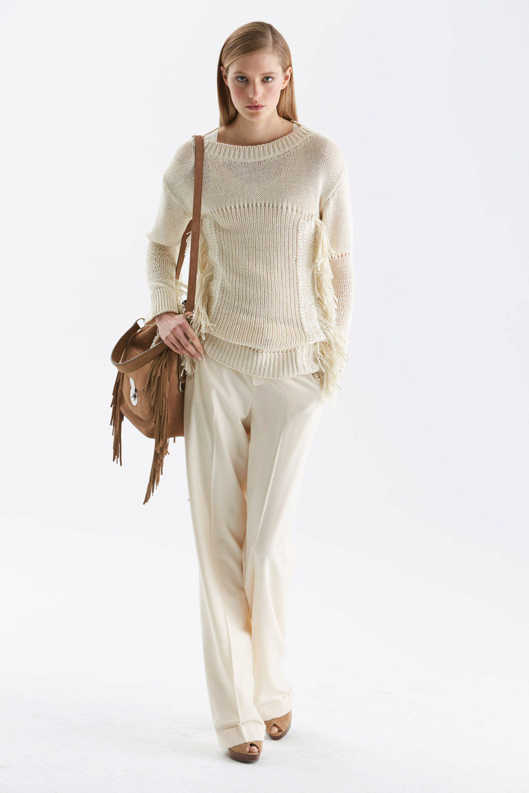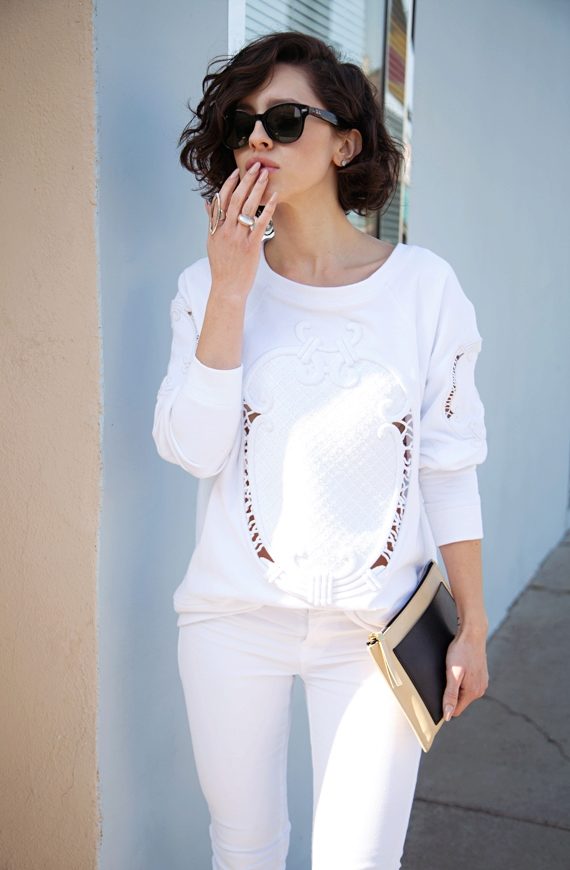 The white pullover is a gentle decision that changes the perception of your image, turning you into a fragile and romantic creation.