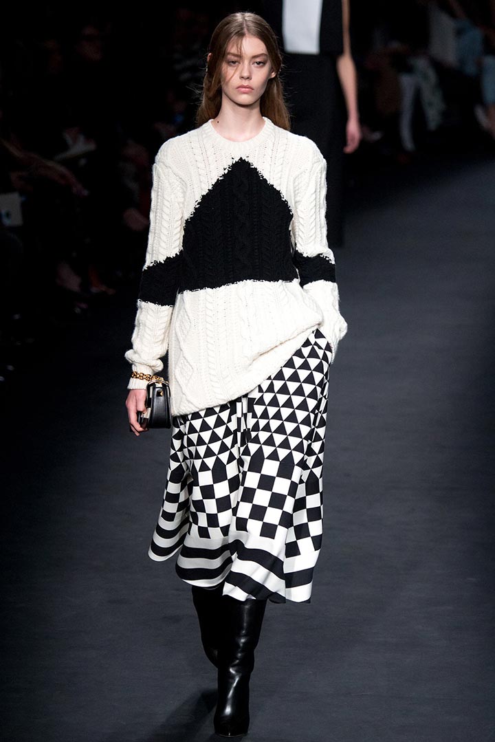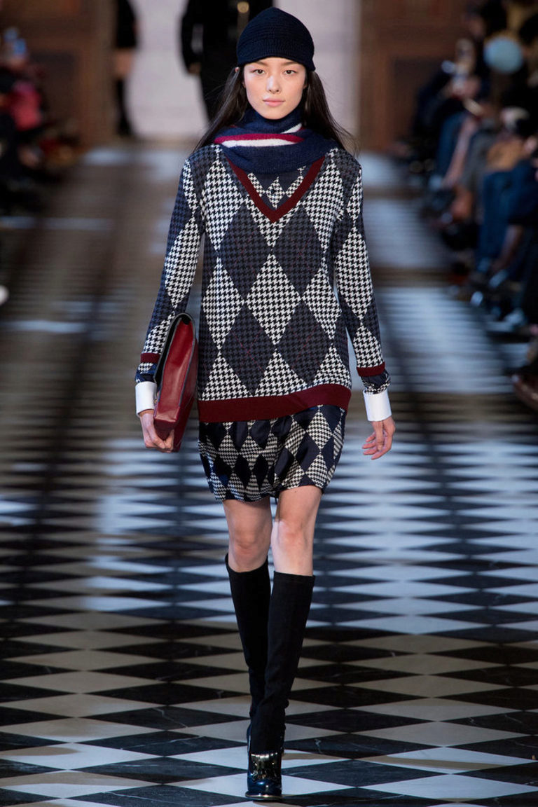 A pullover with rhombuses is a real classic of the English style. Intellectual and sophisticated fashionistas will certainly like this thing.
