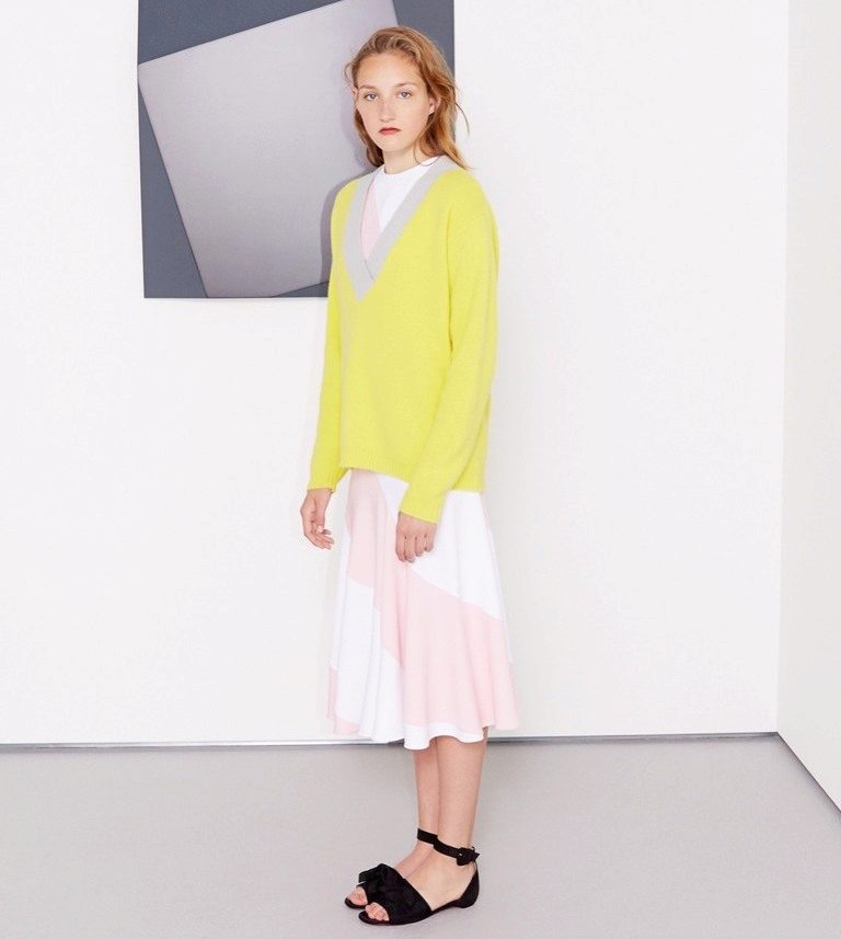 The classic pullover is a sweater with a straight or fitted silhouette with a long, tapered sleeve and a triangular neckline.