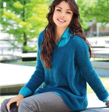 Mohair pullovers are models from yarn that is made from the wool of goats of a special breed. Pullovers from this material are very fluffy, soft and pleasant to the touch.