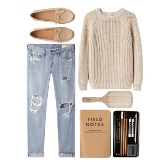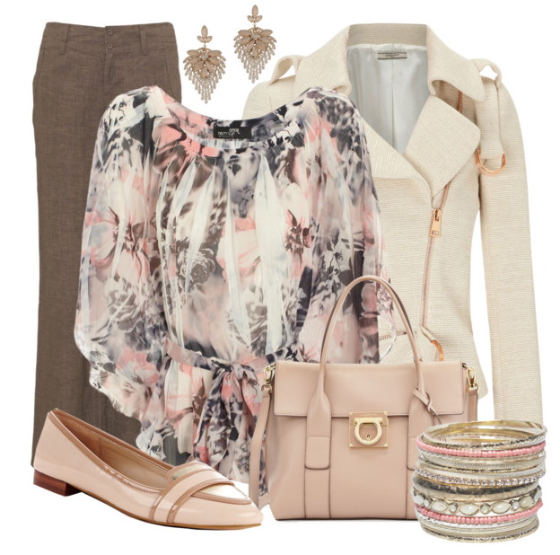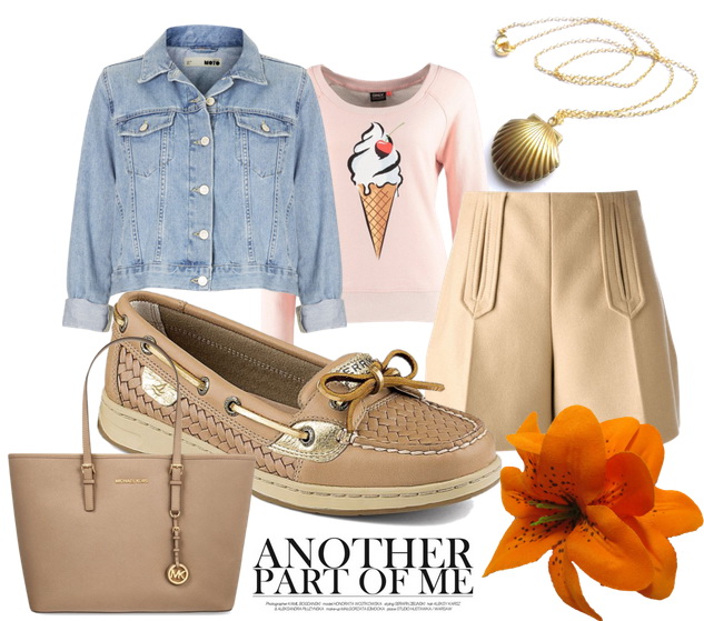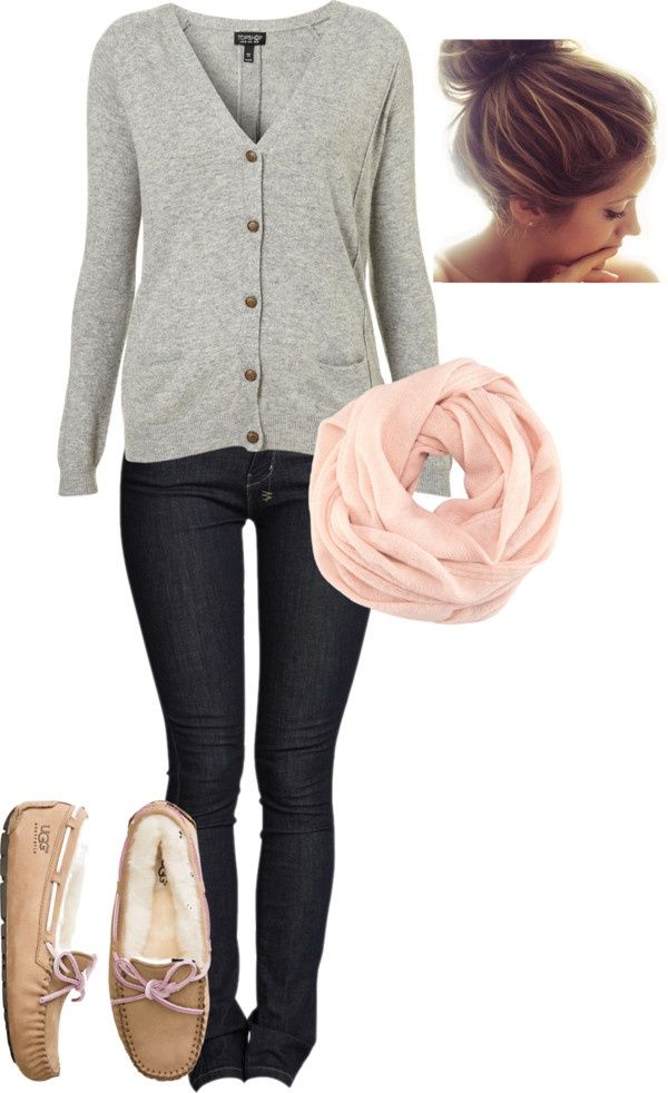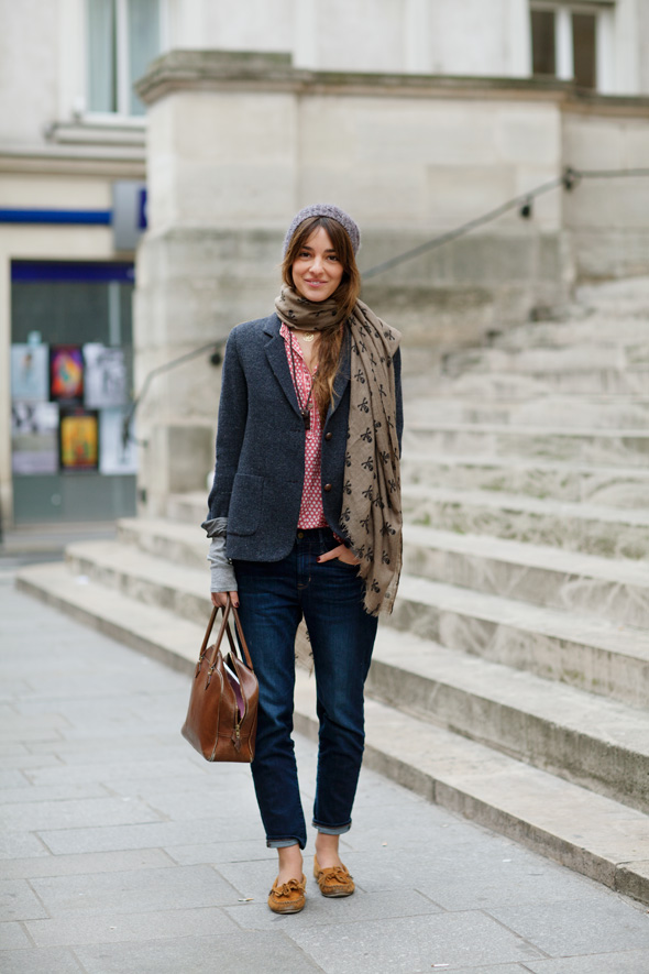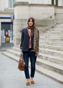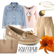 Light windbreakers and jeans, thin jackets and short coats of the corresponding colors: sand and light brown look good from warm clothes with moccasins. Shoes are not designed for use in the cold season, so it is undesirable to create sets with things that have fur elements.
