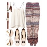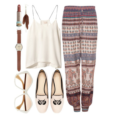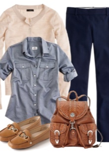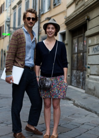 Before choosing an outfit, you should decide in what style it should be performed. Romantic set should include long loose shirts or fitted tunics. Extravagance will give beige moccasins in combination with bright cotton cardigans catchy shades: yellow, poisonous green, red.