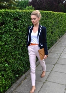 - Sport style. A wonderful ensemble will turn out with a combination of tight leggings and a simple T-shirt with moccasins of a light beige shade. They are not recommended to be worn with tracksuits designed specifically for physical activity.