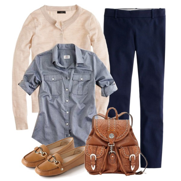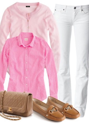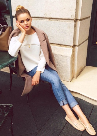 The spectacular image will be obtained when moccasins are combined with clothes of rich, saturated tones: emerald, sky blue. Sweaters and blazers complete with beige shoes will look very advantageous.