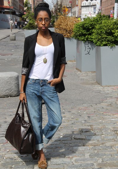 - Democratic office style. Moccasins are not combined with all types of clothing. You should not wear flat shoes with dresses and strict skirts, suggesting the presence of high-heeled shoes. An excellent option are straight black pants with a turtleneck or shirt - in general, the office kit should look simple and comfortable.