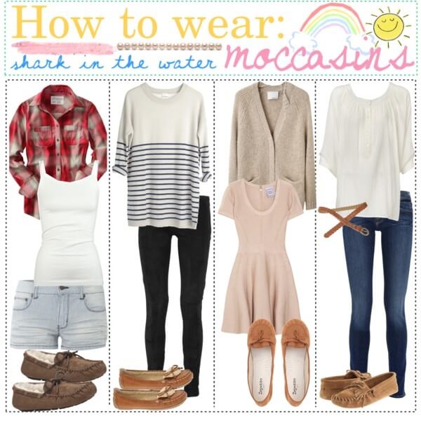 Moccasins are not usually worn with socks, but sometimes in cool weather this is necessary. Preference should be given to monochrome short socks. They do not wear dresses, skirts and shorts. The best solution is to wear pants or jeans.