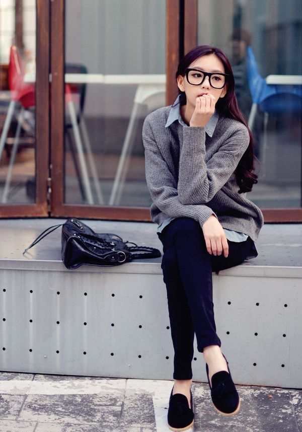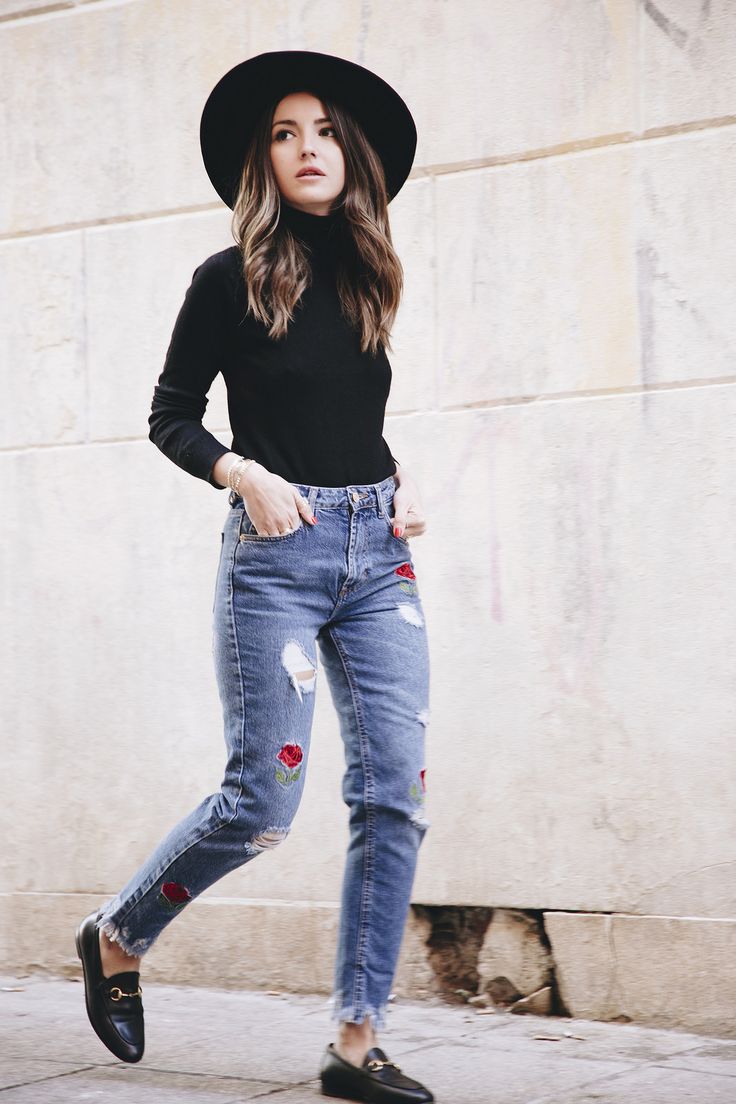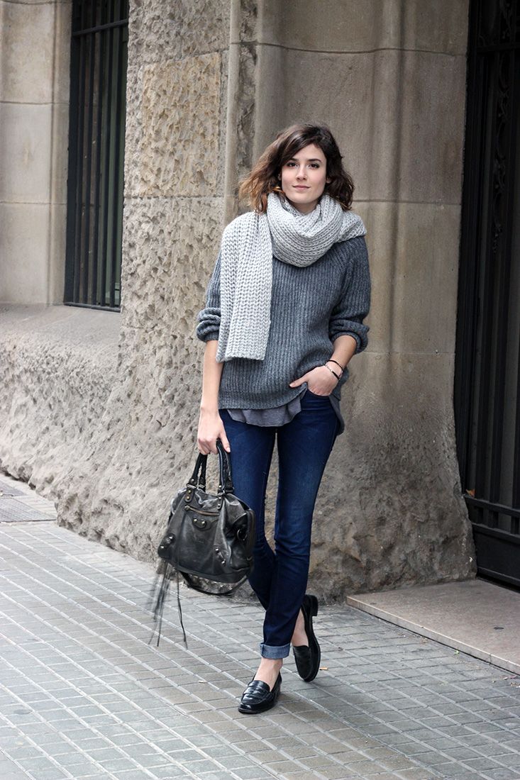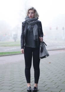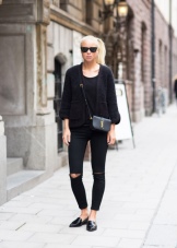 On a cold autumn day, black moccasins will best fit a warm knitted sweater and classic jeans or a turtleneck.