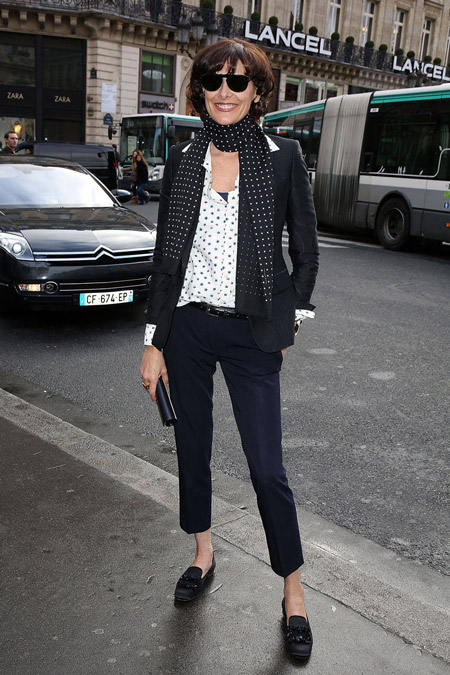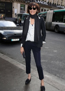 Moccasins can also be worn to a motley wide skirt to the floor, tailored in gypsy style or simply flared. Laconic moccasins will make an excellent company with a set of white blouse and black narrow trousers. A beautiful addition to the image will be a hat in tone to the shoes.