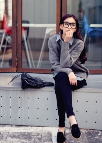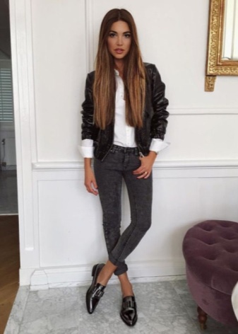 Moccasins are unlikely to look harmonious with a strict business suit, but if an office dress code suggests a more democratic and free style of dressing, then they may well be combined with a white shirt and black skirt or pants.