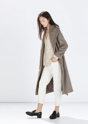 If moccasins are used as demi-season shoes, then you can safely wear the floor light trench coats, raincoats, windbreakers, short coats, etc.