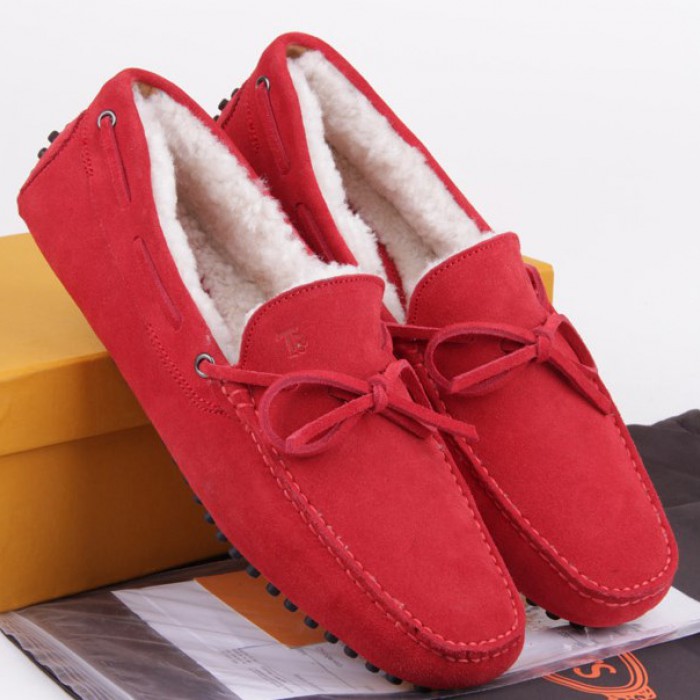 Moccasins with fur are worn mostly in winter, combining with various outerwear. Jeans in combination with a blown jacket, park or a down jacket are suitable for a casual look. Red models will look good with khaki, black, gray, beige and white top.