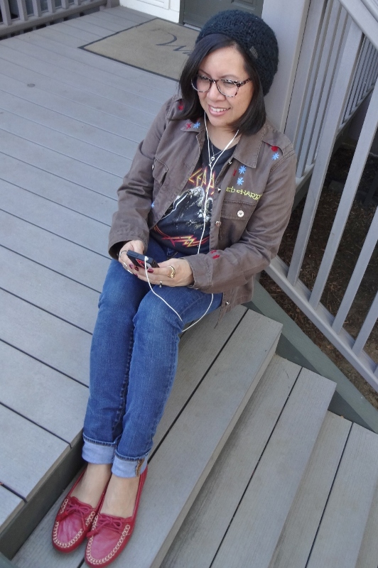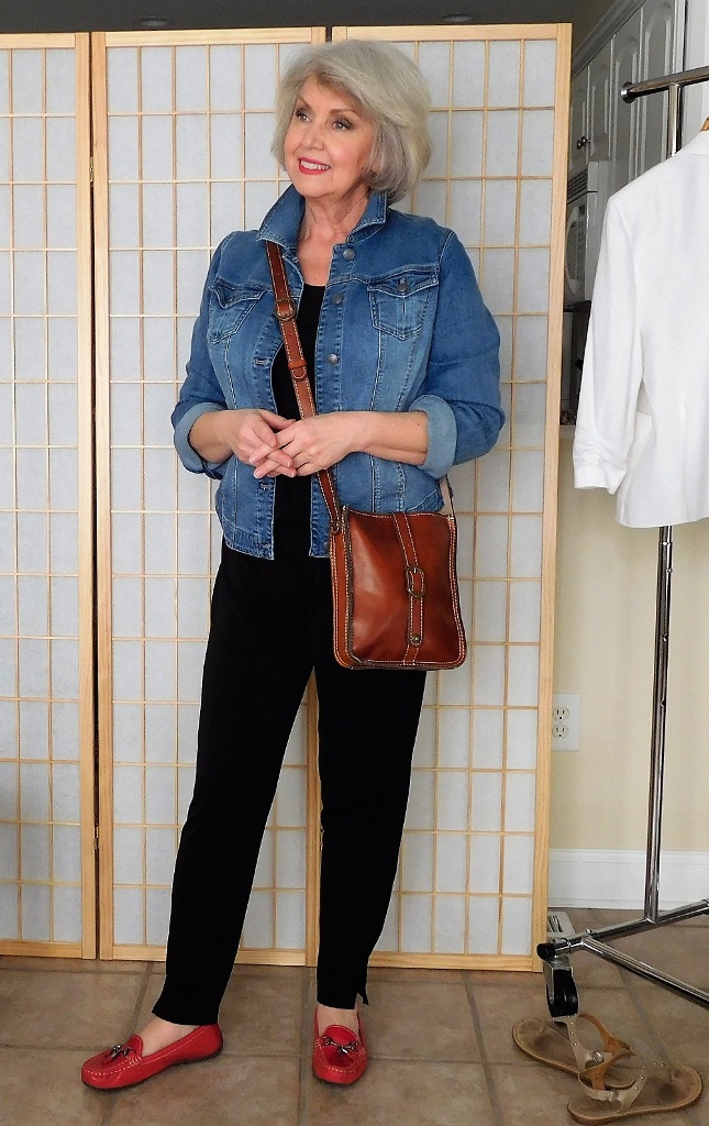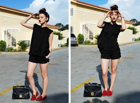 Well, if you add a look accessory to match the shoes. It doesn’t have to be a bag, the cap, scarf, snood, red frame of fashion glasses or red lipstick will look more interesting.