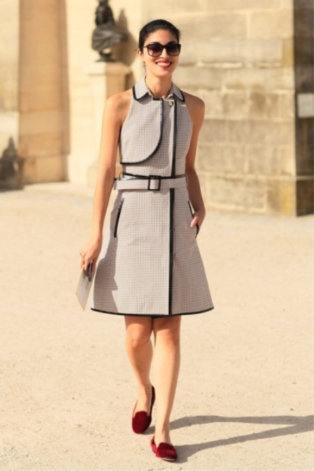 Choose a straight knit dress that you usually wear with sneakers or sneakers. A denim shirt dress will do as well, it will look very impressive! If this is not a business, but a street look, experiment with the color gamut, try the models of white, blue, blue, yellow, green.