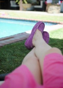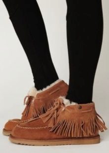 It should be borne in mind that uggs, moccasins should not be wetted - these shoes are inappropriate to wear in rainy weather. If the product is still wet, put newsprint inside, which will gradually absorb moisture. Contamination is necessary to gently brush with a brush for shoes.
