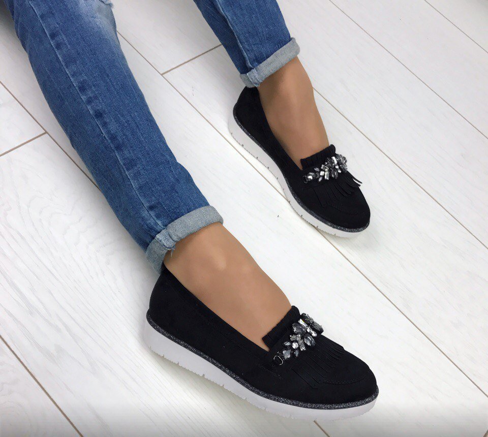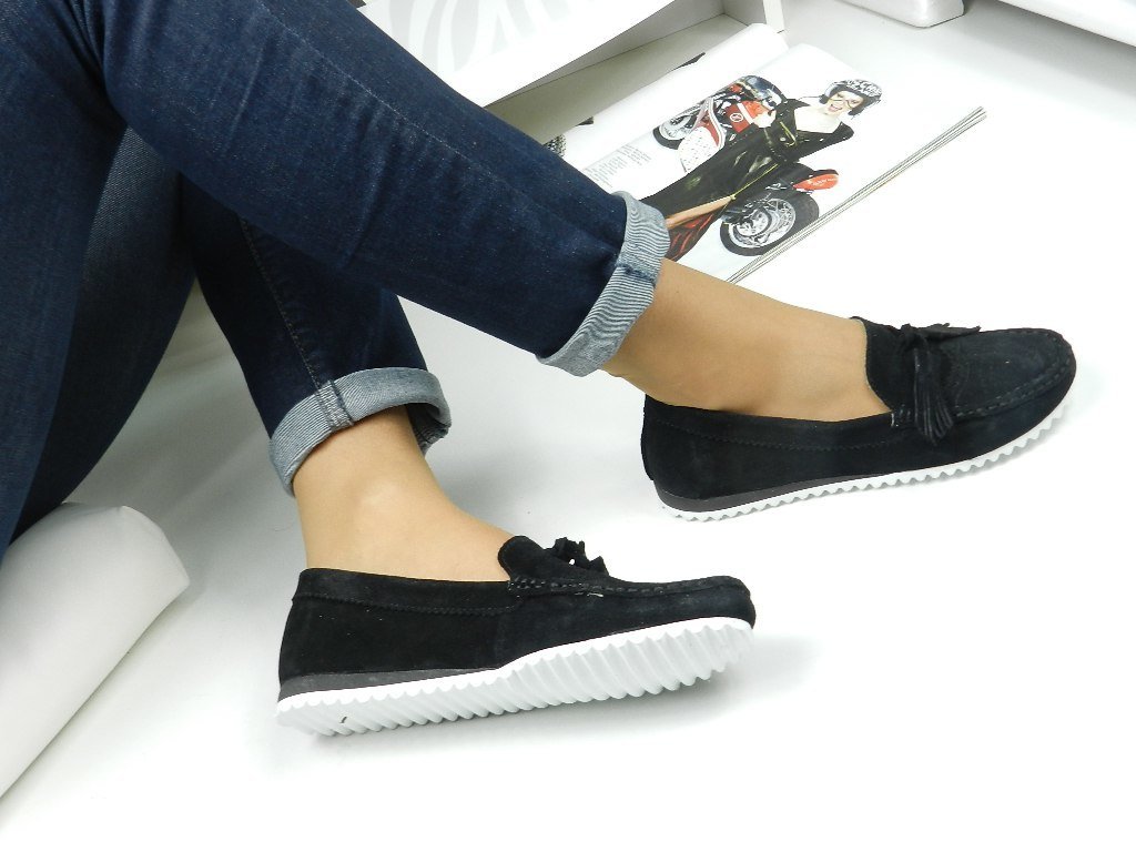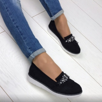 - Moccasins decorated in classic black color will please real business women.