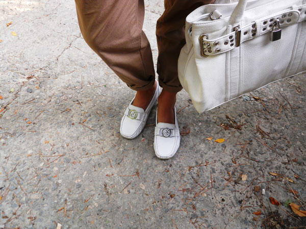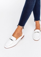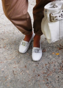 It will be extremely difficult to achieve a successful combination of even white moccasins with classic pants. However, moccasins on a flat sole will be a great addition to summer pants from lightweight knitwear with straight leg. Top stylists recommend choosing more carefully: in color it should be lighter than the base color of the bottom.