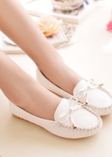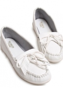 The most relevant options for women's white moccasins are products from major brands or famous designers. The latest collections have presented leather models, decorated with very original and bright decorative elements in the form of artificial flowers, embroidery, various rhinestones or even paintings. On a white background, this method of decoration will look the most impressive and interesting.