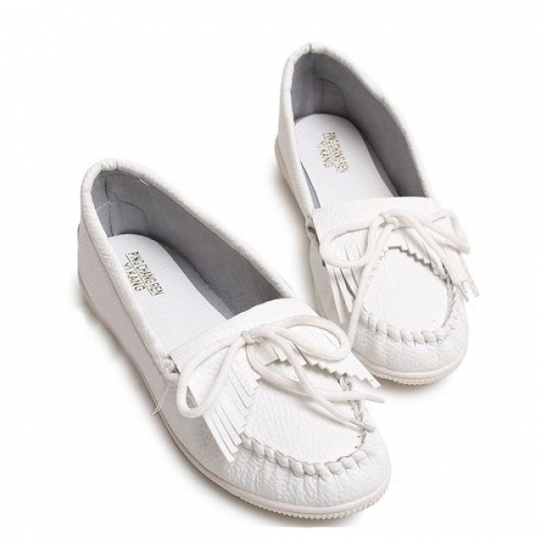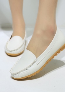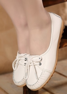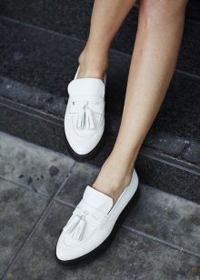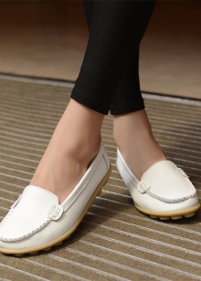The flexible rubber sole of such products will not allow women's legs to tire even during long walks, and therefore such shoes are considered the best option for everyday wear. White color in this case is one of the advantages of such shoes, because it is the most versatile and at the same time presentable, in order to balance the simplicity of the classic model of moccasins.