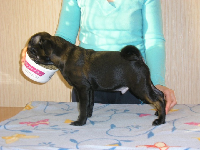 Pugs are funny animals that seem to be well-fed, but constantly hungry. This is a mistaken opinion - in dogs of this breed, the muscles are quite elastic, and under them ribs and spines are clearly visible. These are very active dogs, so the diet in terms of the quantity and composition of food must necessarily take into account not only the age of the dog, but also the characteristics of its physical activity.