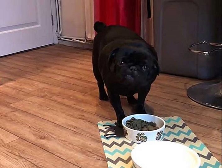 There are special feeds for pugs, which are made taking into account the age and weight of the dog. If the dog is allergic, he needs to choose the appropriate type of food. For those who have a problem with obesity, choose a dietary type of food. In no case do not combine ready-made food and natural food, do not pour broth, milk or kefir into dry food. Such experiments can adversely affect the health of the dog and lead to metabolic disorders, provoke a number of diseases.