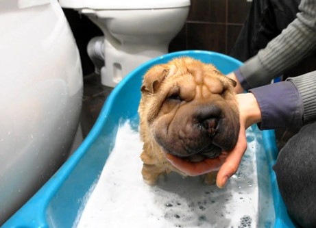 Bathing the dog is not recommended, instead it is better to use dry shampoo powder. Nose crease and ears also need to be cleaned.