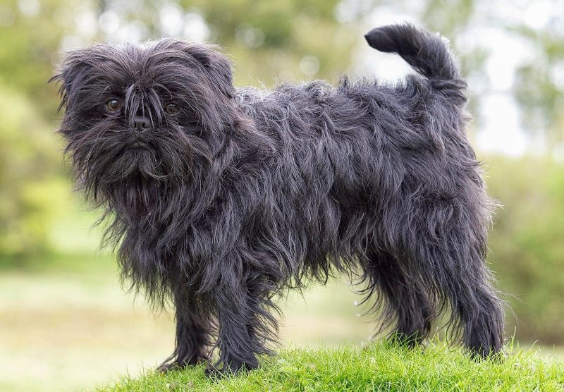 Dwarf dog, which has a short muzzle and a strong build. The color is black, the coat is medium, rather tough. The nature of the animal is serious, despite its excessive activity. Affhenes possess all the qualities of service dogs and can be used in this role.