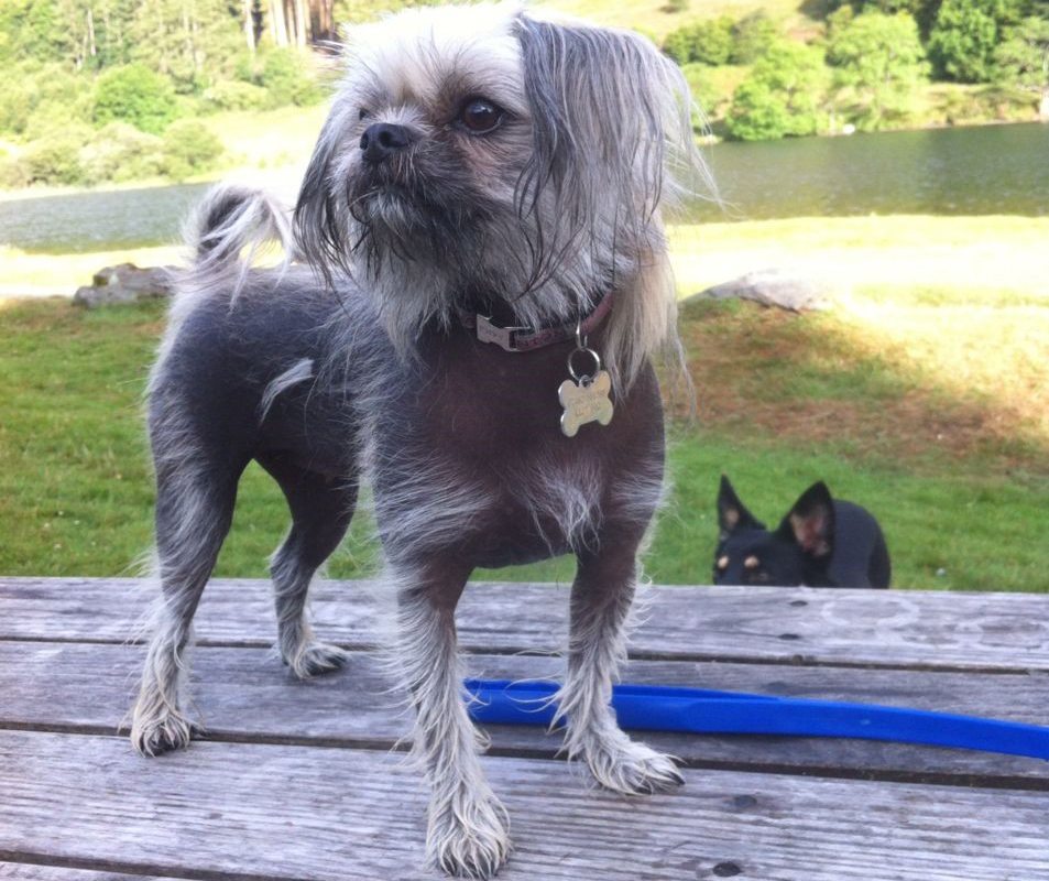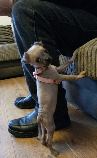 A cross between a pug and a Chinese crested