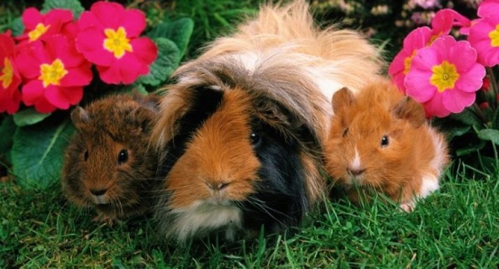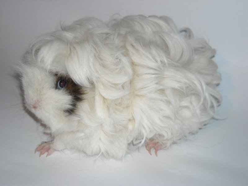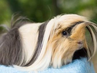 Guinea pigs with elongated fur are completely different from each other - there are individuals with long locks, curly rodents are no less common. Fur can vary in structure, direction of growth, as well as the presence or absence of shaggy whiskers, all kinds of bangs and sockets.
