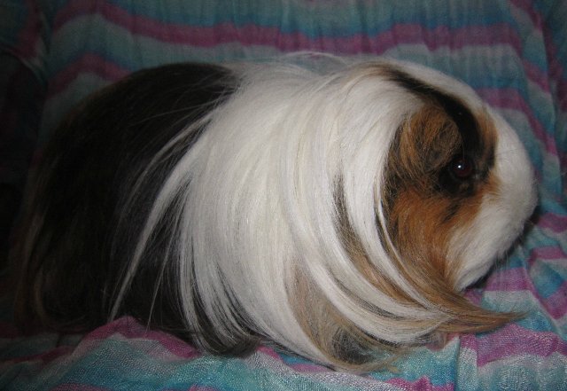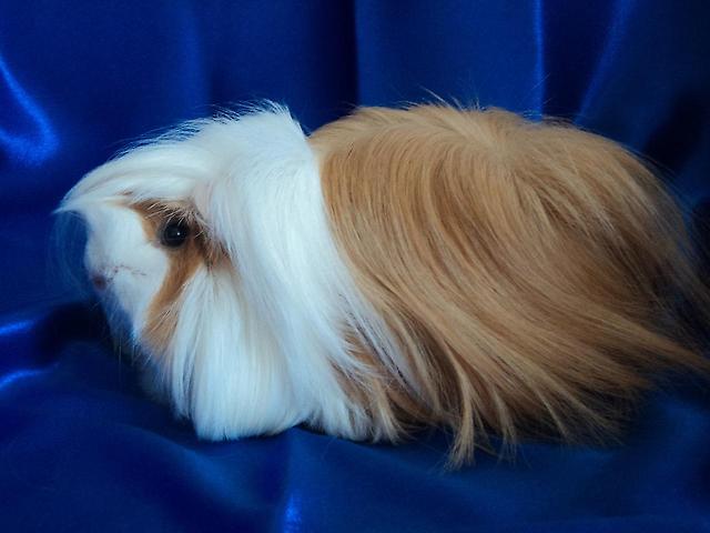 In the long-haired guinea pig, the oval body, which smoothly passes into a rounded face, while the profile can be safely called "Greek", since the nose and the forehead here are one whole. The ears of a shaggy guinea pig are very funny - folded with an envelope, they can be flattened to the head or be sticking out, eyes are dark, they look like beads.