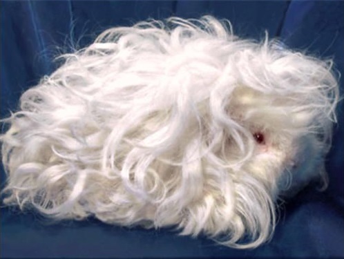 Luncaria is the most original of all artificially created breeds. This is another long-haired guinea pig, whose hair can neither be combed nor straightened. Even after thoroughly combing and treating with conditioning agents, it still almost immediately blends into corkscrew curls that perfectly hold the shape. Thanks to this feature, no debris clings to the fur.
