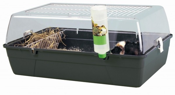 The cage must be equipped with everything necessary to maintain the normal life of the pet.