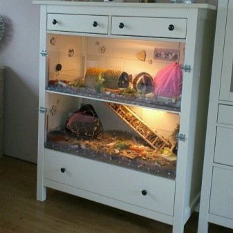 Glass options are considered to be the original accessory of the cage. In fact, in their quality use tanks for an aquarium. Unfortunately, breeders do not think that such houses easily hurt a pet when he wants to sharpen his teeth. Glass enters the body, which is the cause of death.