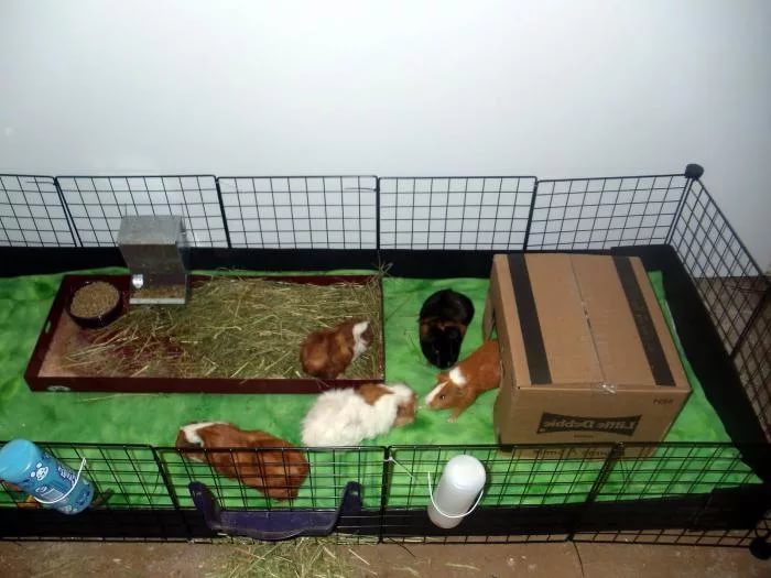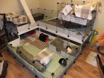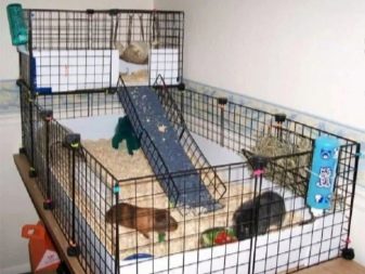For one rodent, the size of the cage should be 80 × 110 cm, for two - 80 × 150 cm, for three - 80 × 180 cm, and for four - 80 × 220 cm.