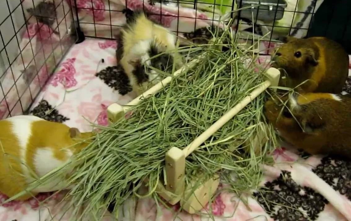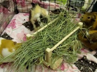 If you put a ball with hay in a cage, then many rodents will be able to pull straws out of it. But this design will not be convenient for eating. You can put a special tray, and the ball.