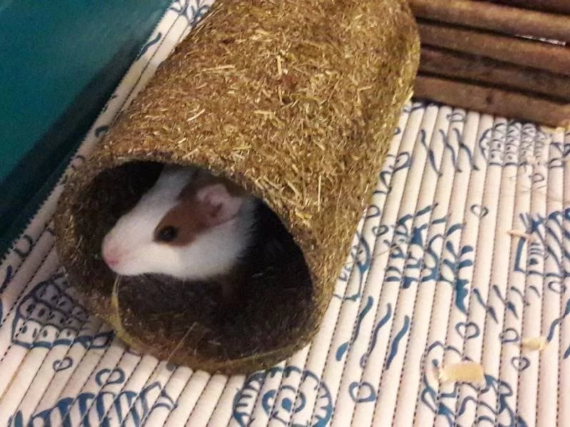If the guinea pig is constantly hiding inside the house, then it will not be possible to tame, because inside it the animal can feel detached and cannot see people. So that the pet could get used to the person the house needs to be temporarily changed for a handful of hay.