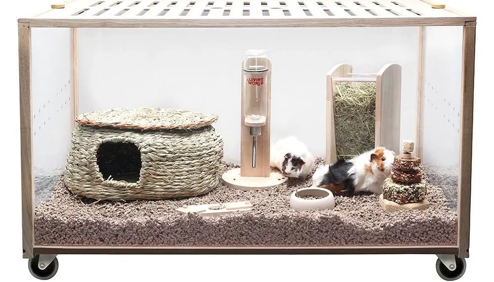 - Terrarium. Pretty good option for keeping a guinea pig. The main thing is that the sides of the container were made of metal mesh, and not of glass. An important advantage of the terrarium is the lack of debris around. It is strictly forbidden to use a terrarium completely made of glass. In them, the animal will be uncomfortable due to insufficient oxygen circulation, and the litter at the bottom will be constantly wet.