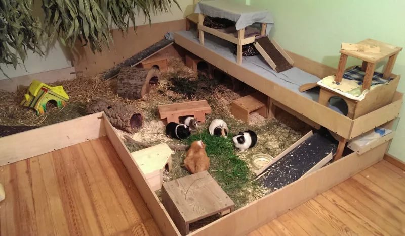 - Aviary. Some apartment owners, who are allowed living space, prefer to use just such an option at home for rodents. The main thing is that the height of the walls should be at least 40 cm, otherwise the guinea pig will easily get out for a walk.