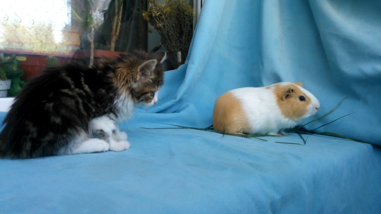 Guinea pigs by their nature are indifferent to other pets. They have enough communication with their team. Unfortunately, this fact can play a bad role in the life of a rodent, especially if other types of animals live in the house.For example, after meeting with a cat, a frightened animal will try to hide in the darkest corner and dig under the ground. And realizing that the escape will not work, pressed against the wall and freezes in one position. In this case, the guinea pig can get a heart attack.