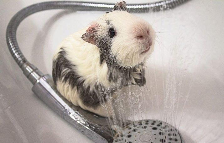 It is necessary to bathe the guinea pig only in the most extreme cases. Water treatments cause great stress in the animal. But if you still had to resort to them, it is important that the water in the bathing tank is warm. And the procedure itself should be carried out in a heated room, where there are no drafts. As a detergent suitable shampoo for cats and dogs. For swimming is used a small tank with a minimum amount of water.