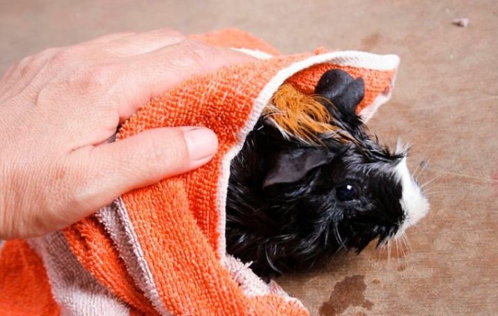 After washing the animal should be wrapped in a soft towel and hold on his hands until the wool dries. It is strictly forbidden to use a hairdryer, as a loud sound may frighten a helpless rodent.