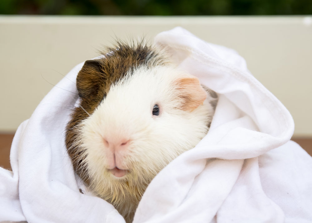 - In the sink, close the drain, type enough water so that it touches the belly of the pig. At the bottom of the sink it is reasonable to put a small cotton napkin so that the animal can grasp it with its paws - so the animal will be calmer.